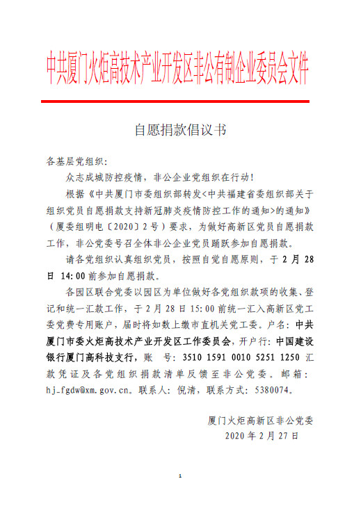 作為L(zhǎng)ED制造行業(yè),乾照黨總支大部分黨員的工作區(qū)域是在完全封閉并要求無(wú)塵的車(chē)間中,沒(méi)有網(wǎng)絡(luò),手機(jī)甚至是喝水的杯子都不允許隨意帶入。進(jìn)入車(chē)間后,每個(gè)人都“全副武裝”:防塵服、鞋套、口罩缺一不可,個(gè)人物品均需放置在固定的區(qū)域。也正因?yàn)檫@樣特殊的工作環(huán)境,黨員干部以及積極向黨組織靠攏的積極分子們更能體會(huì)前線物資的寶貴。不能讓前線缺了物資!也是這樣的信念,讓在工作時(shí)間“隔絕外界”的乾照黨員們,在收到自愿捐款倡議的第一時(shí)間紛紛獻(xiàn)出了自己的一份心意,匯總表一再更新,款項(xiàng)總數(shù)一次次增加:500元、1500元、2588元、3888元、4388元……5338元不是終點(diǎn),乾照黨總支會(huì)緊跟上級(jí)黨委的步伐,為抗擊疫情工作持續(xù)奉獻(xiàn)屬于乾照黨員的一份力量!