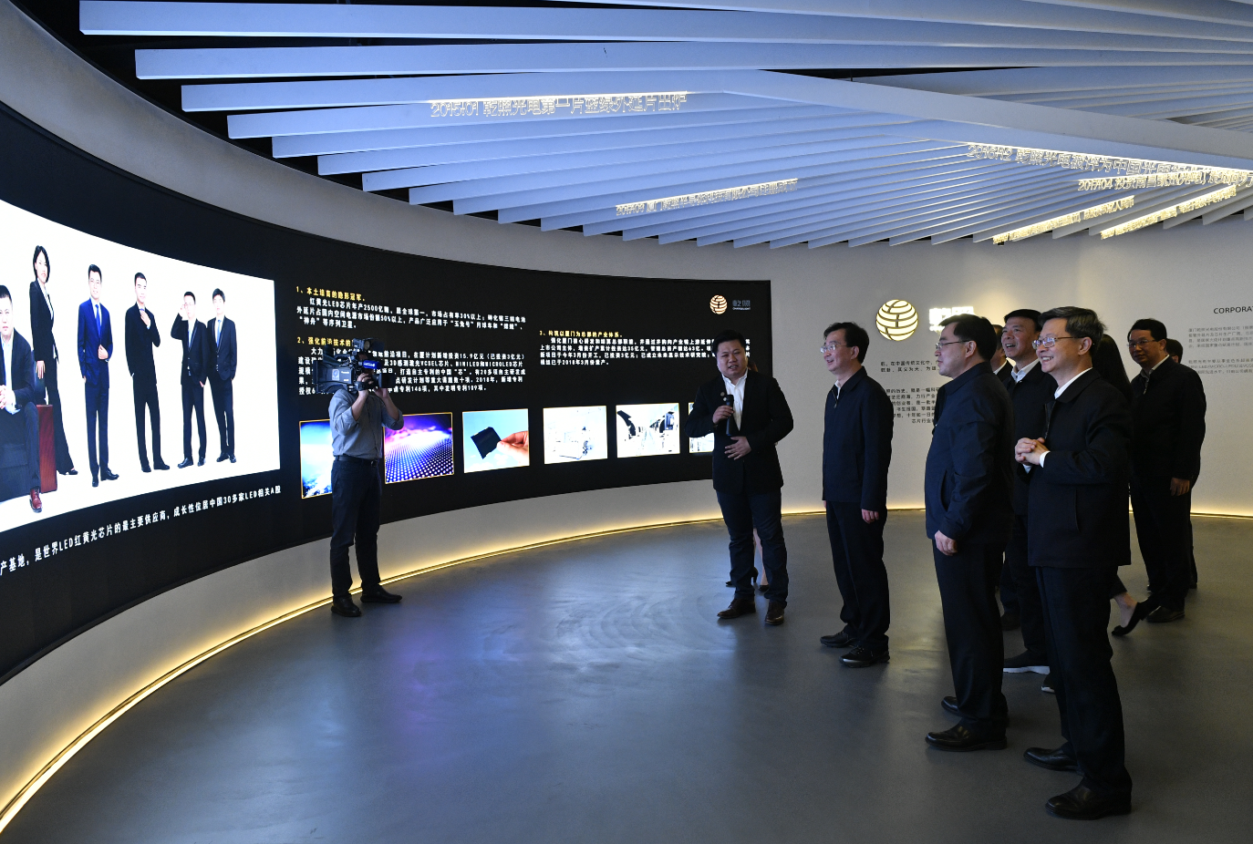 在公司展廳,王書記認真聽取了金章育關于公司發(fā)展情況的匯報。乾照光電擁有全球最大的砷化鎵化合物半導體芯片生產(chǎn)基地,成長性位居中國30多家LED相關A股上市公司之首,這引起了王書記的濃厚興趣。他詢問了公司的技術研發(fā)投入情況,當了解到公司每年都投入大量資金用于技術研發(fā)的情況后,他對乾照光電依靠技術創(chuàng)新驅動企業(yè)發(fā)展的戰(zhàn)略表示了高度的肯定和贊許。