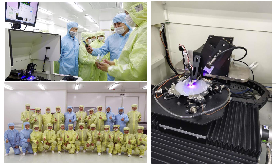 隨后,董事會一行參觀了外延MOCVD車間、質(zhì)檢間、芯片蒸鍍車間、清洗車間、黃光站、全測站,并觀看了芯片的生產(chǎn)過程,邱圣杰全程進行了講解。在芯片點測間,董事會一行觀看了芯片的點亮過程,一枚4英寸晶圓在工程師的操作下被成功點亮,發(fā)出幽藍的光芒。經(jīng)過近4個月的設(shè)備調(diào)試,江西乾照光電的芯片性能得到了極大提升,標志著江西乾照光電的生產(chǎn)研發(fā)取得了階段性的進展。