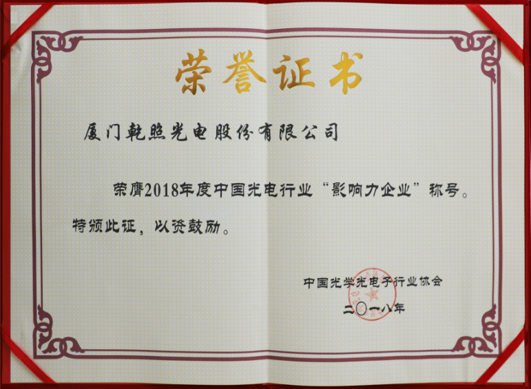 4月26日,2018年度中國光電行業(yè)協(xié)會頒獎典禮在北京召開,此次評選活動由中國光學(xué)光電子行業(yè)協(xié)會、中國半導(dǎo)體照明/LED產(chǎn)業(yè)與應(yīng)用聯(lián)盟和中國電子報共同舉辦。經(jīng)過協(xié)會專家投票、常務(wù)理事及理事單位投票、網(wǎng)絡(luò)投票和評選組委會評審等環(huán)節(jié),乾照光電榮獲2018年度中國光電行業(yè)“影響力企業(yè)”榮譽稱號。這也是繼2016年和2017年后,乾照光電連續(xù)3年獲得此項榮譽。