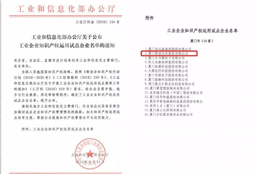 入選國家工業(yè)和信息化部公布的“工業(yè)企業(yè)知識產(chǎn)權(quán)運(yùn)用試點(diǎn)企業(yè)名單”