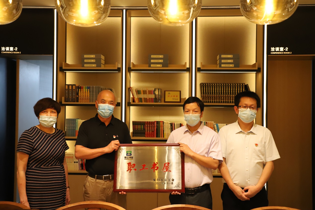2020年5月26日,黨建掛鉤聯(lián)系單位廈門市總工會副主席劉義平一行蒞臨乾照光電調(diào)研指導(dǎo),翔安區(qū)總工會常務(wù)副主席王黎明等領(lǐng)導(dǎo)陪同調(diào)研。調(diào)研組一行參觀了公司展廳、書吧以及黨建文化墻、黨群活動中心,詳細了解了公司生產(chǎn)、經(jīng)營以及黨建帶工建工作情況。期間,雙方還舉行了“職工書屋”授牌儀式。