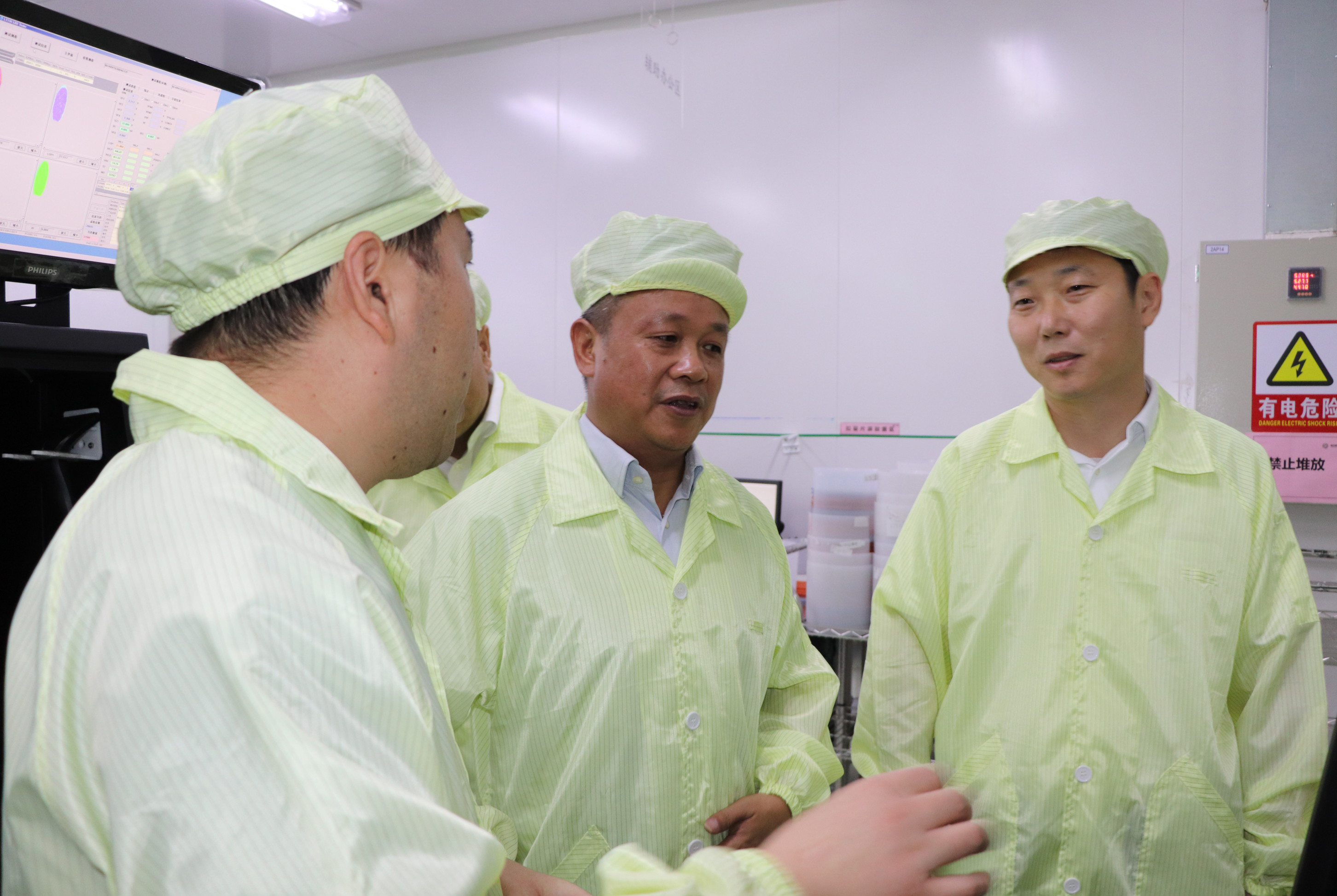 隨后調(diào)研組一行前往外延片、芯片生產(chǎn)車間,觀摩了外延片生產(chǎn)技術(shù)工藝和芯片點(diǎn)測、分選等流程。調(diào)研中,王書記對江西乾照光電迅速發(fā)展的勢態(tài)和智能化的生產(chǎn)工序表示高度的贊賞。他勉勵我們要腳踏實(shí)地,立足新建,充分利用現(xiàn)有的資源和平臺,高標(biāo)準(zhǔn)做好科學(xué)謀劃,加強(qiáng)技術(shù)創(chuàng)新研發(fā),努力提高自主核心競爭力,把企業(yè)做大做強(qiáng),實(shí)現(xiàn)企業(yè)高質(zhì)量發(fā)展。