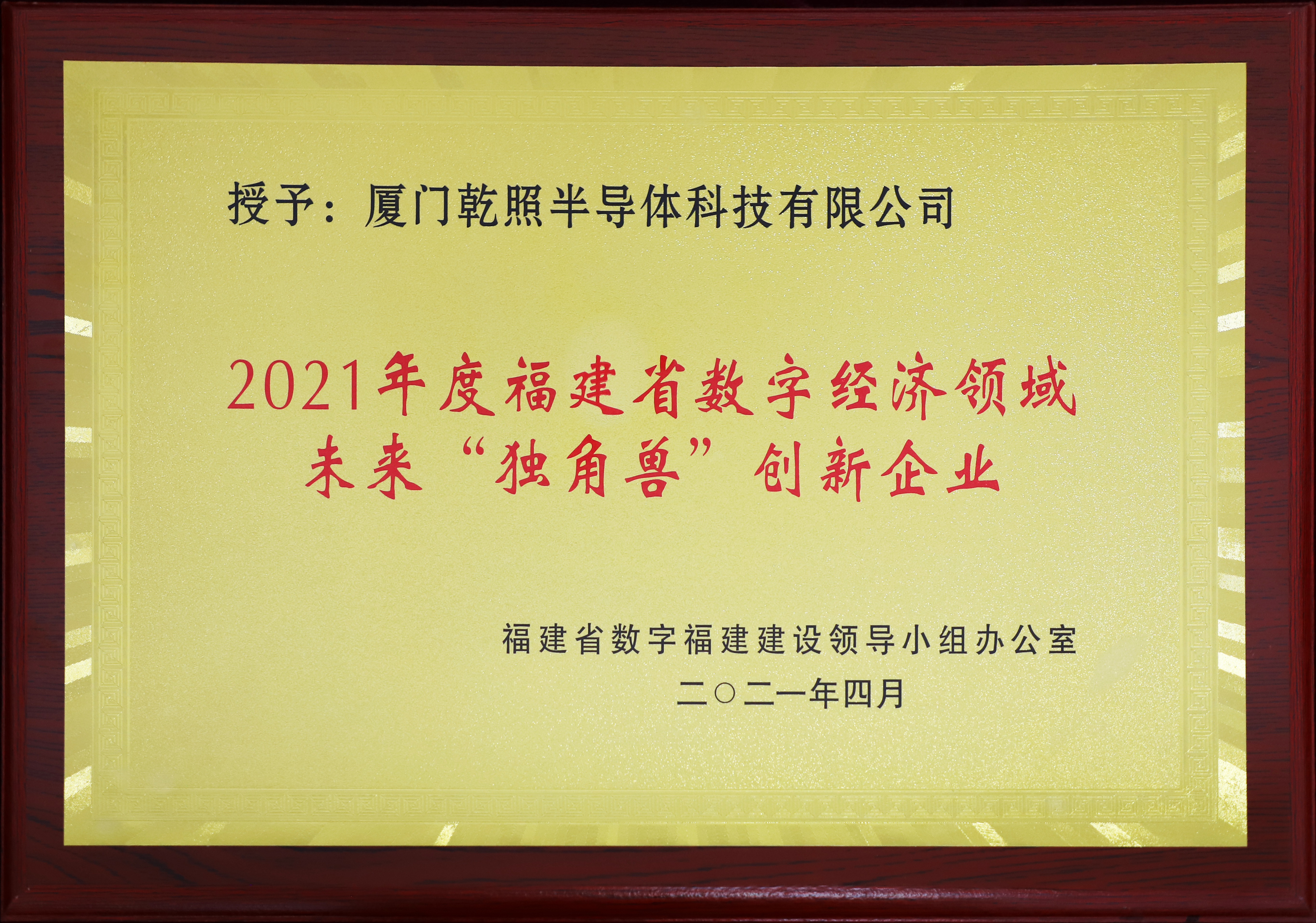 廈門(mén)乾照光電榮獲“2021年度福建省數(shù)字經(jīng)濟(jì)領(lǐng)域未來(lái)‘獨(dú)角獸’創(chuàng)新企業(yè)”稱號(hào)