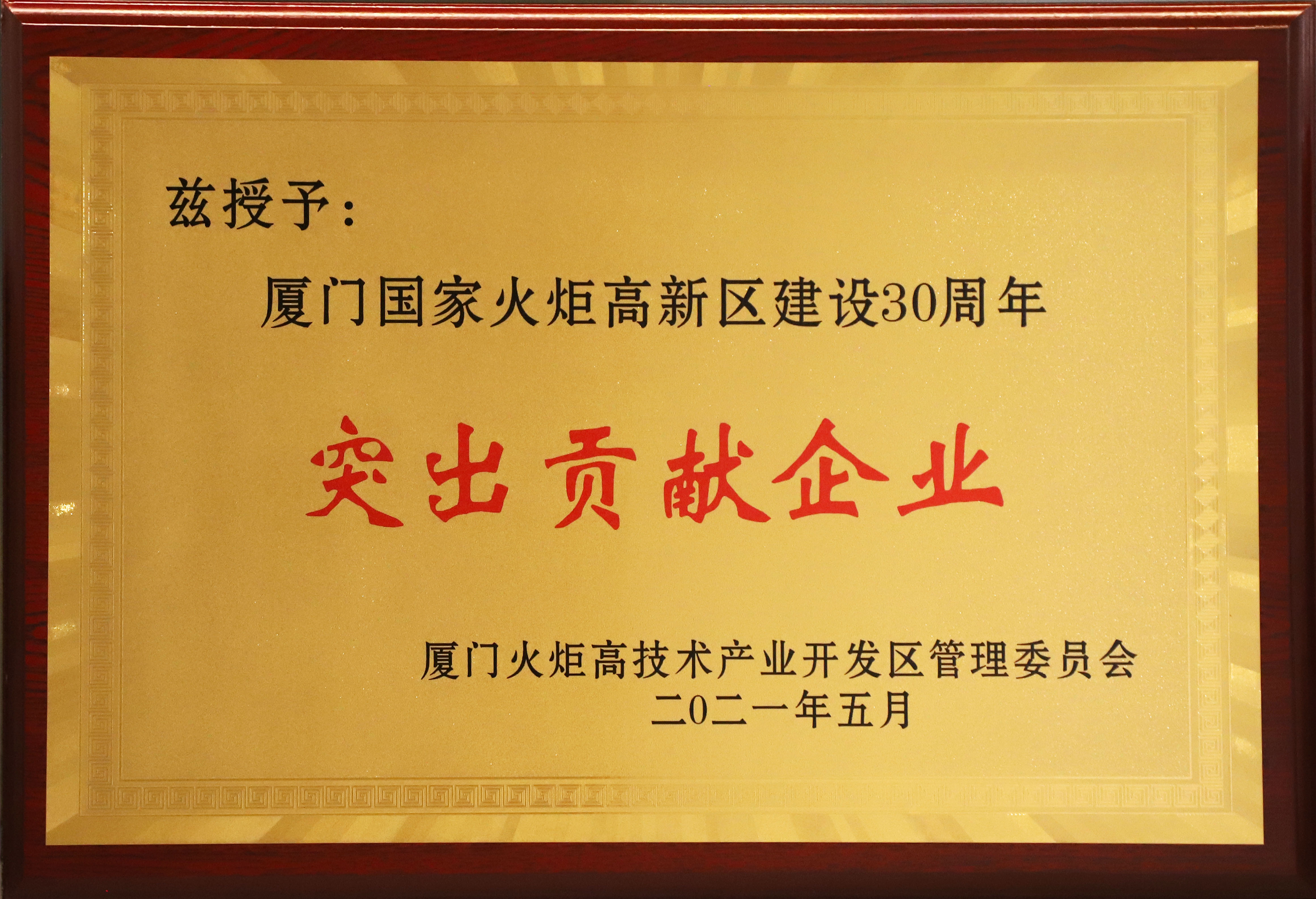廈門(mén)乾照光電榮獲“廈門(mén)國(guó)家火炬高新區(qū)建設(shè)30周年突出貢獻(xiàn)企業(yè)“稱號(hào)