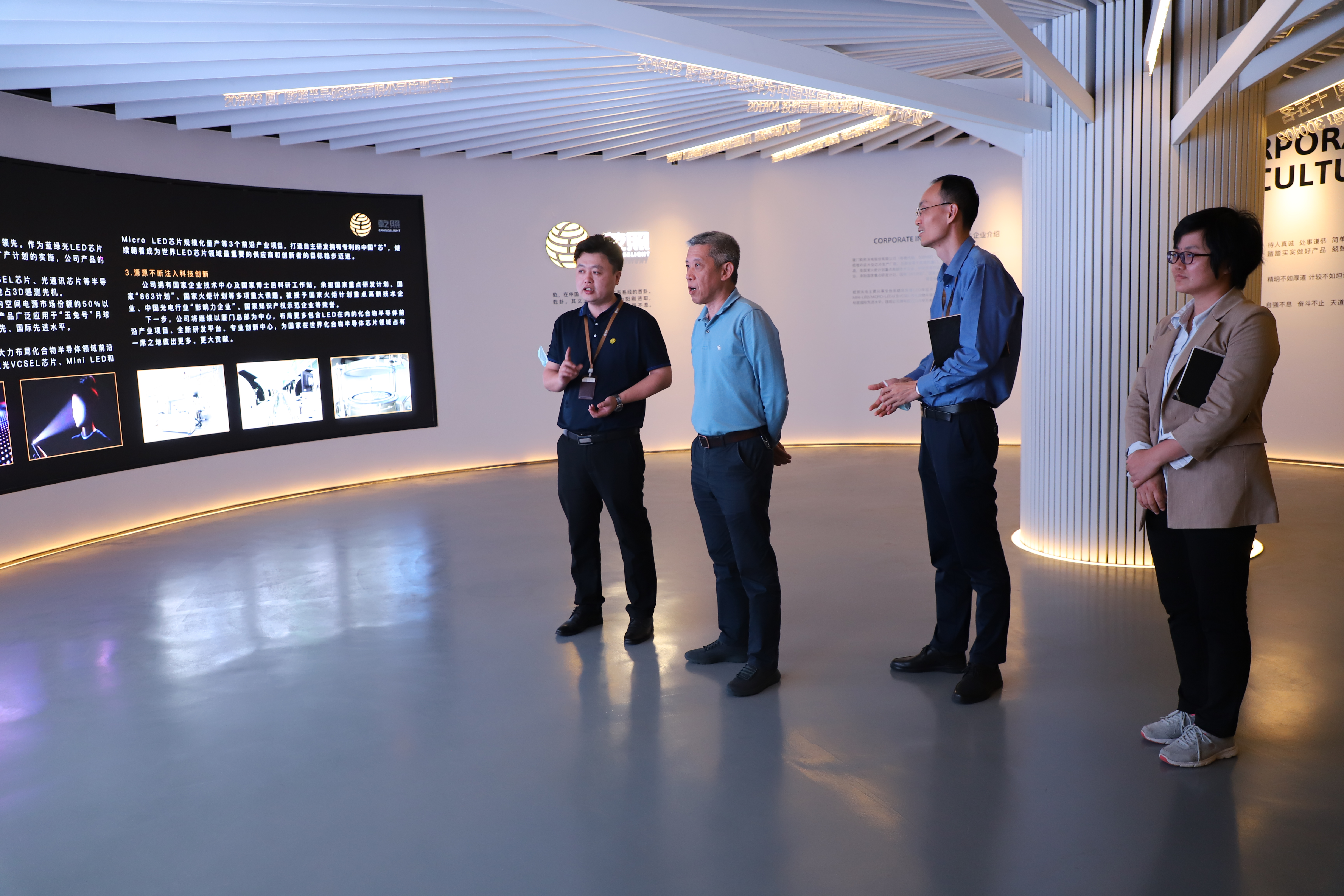 走訪中,馮主席一行參觀了公司展廳,并認(rèn)真聽取了乾照光電發(fā)展歷程、生產(chǎn)經(jīng)營情況的介紹。隨后,馮主席對公司產(chǎn)品技術(shù)及應(yīng)用領(lǐng)域等方面進行了細(xì)致的詢問,并圍繞LED行業(yè)發(fā)展進行了深入探討,關(guān)注公司切實需求。