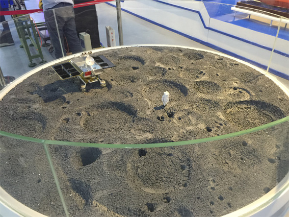 來(lái)一張?zhí)貙?xiě),右下角的這個(gè)是月兔號(hào)月球車(chē),模型上貼的電池芯片是我們公司生產(chǎn)的。