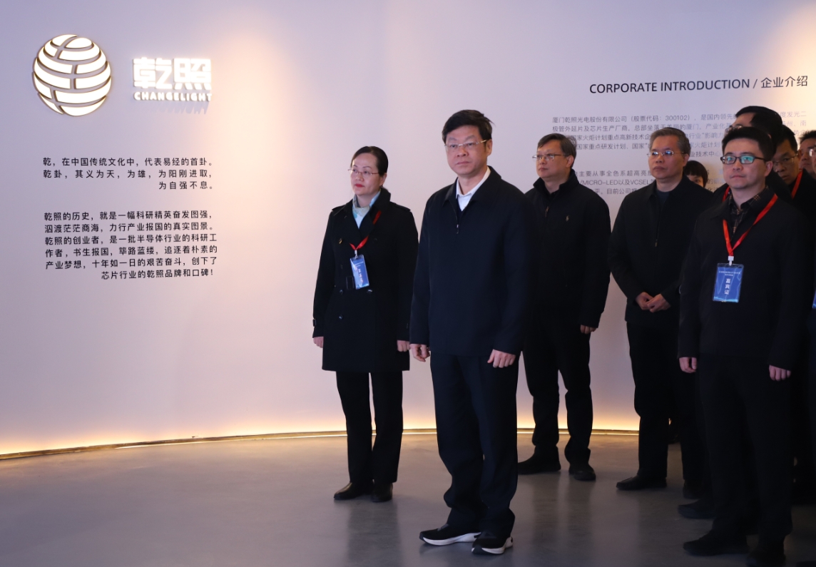 為考察縣域重點(diǎn)產(chǎn)業(yè)鏈發(fā)展,1月29日福建省副省長(zhǎng)林瑞良、黨組成員康濤帶隊(duì)走訪乾照光電。省政府辦公廳、省工信廳、省發(fā)改委、科技廳、財(cái)政廳、省政府發(fā)展研究中心推動(dòng)縣域重點(diǎn)產(chǎn)業(yè)鏈高質(zhì)量發(fā)展專班成員單位有關(guān)負(fù)責(zé)同志;廈門、漳州、泉州、龍巖、三明市政府分管領(lǐng)導(dǎo)、市工信局有關(guān)負(fù)責(zé)同志及所轄區(qū)(市、區(qū))政府主要領(lǐng)導(dǎo)參加考察。乾照光電董事長(zhǎng)金章育陪同接待。